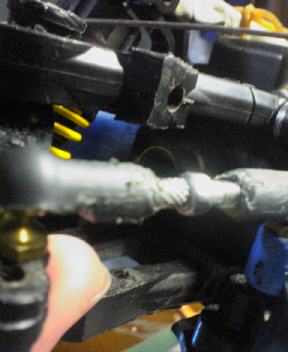 で、なぜかTT01には穴が2つ開いています。使用するのは内側(フロント側)の穴です。